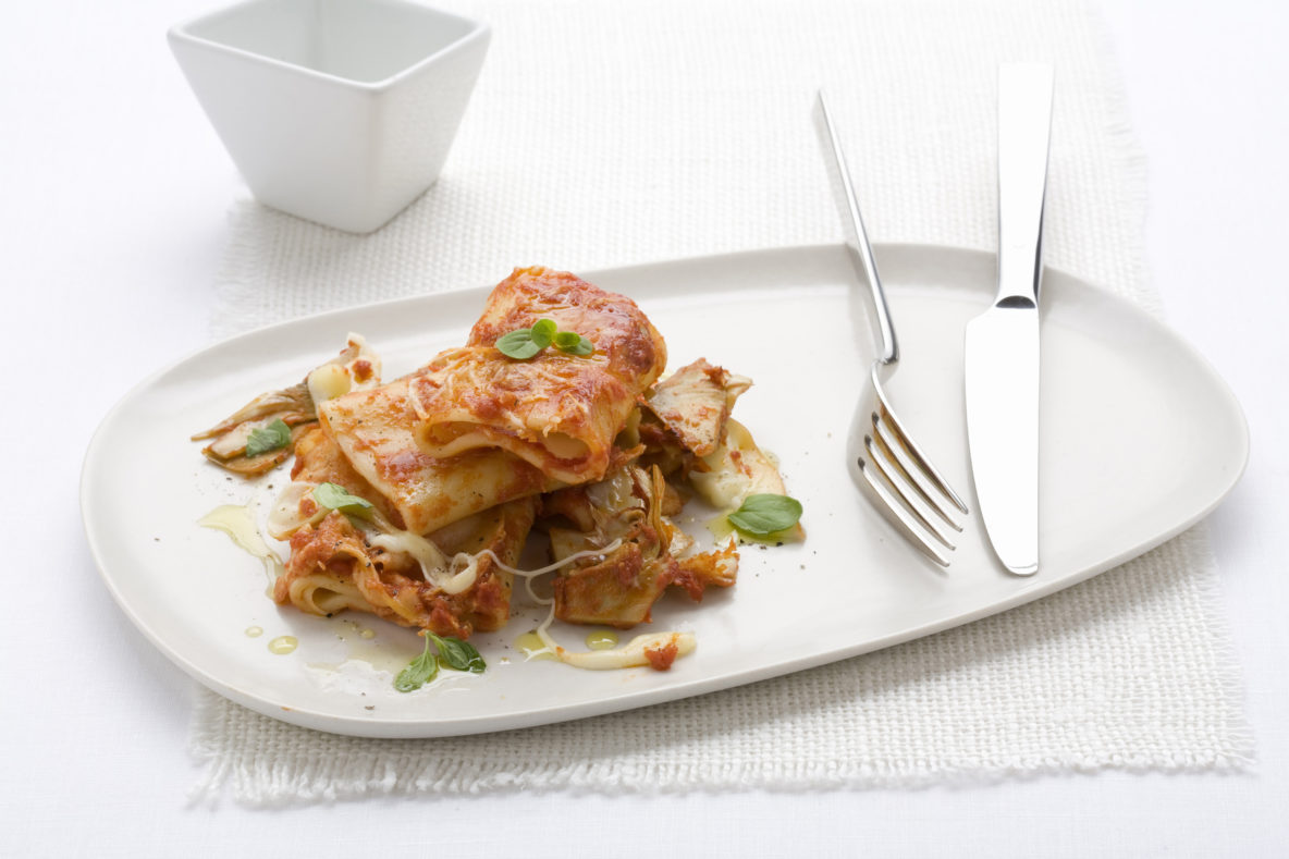 INGREDIENTS (for 4 people): 300g of Paccheri, 300g of smoked cheese, artichokes 6, 50g of grated pecorino cheese, 400g of peeled tomatoes Muraca, extra virgin olive oil, 1 clove of garlic, 1 lemon, 4 sprigs of marjoram, sugar, salt and pepper. PROCESS: Private stem artichokes, tips and the tough outer leaves. Rounded funds, cut them in half, remove any hay … Read More